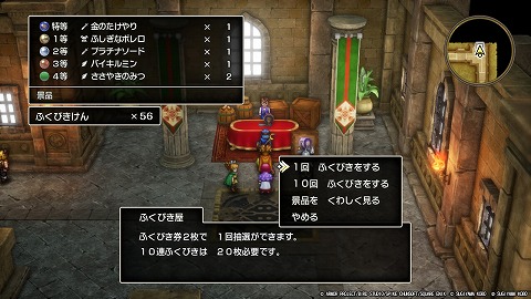 デルコンダル城城壁通路にふくびきやがあります。ふくびきけん2枚で、1回抽選が行えます。