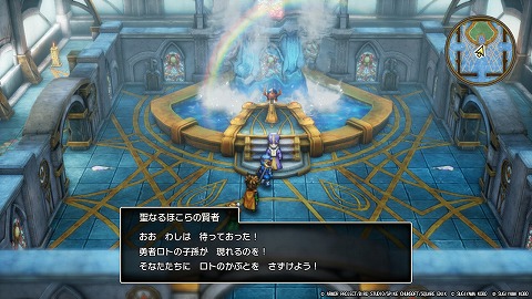 ロトのしるしを入手して、聖なるほこらの賢者に話しかけます。聖なるほこらの賢者が横に移動して、ロトのかぶとが調べられるようになりました。