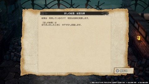 ほしの紋章を入手すると、ぼうぎょした時にMPが少し回復します。