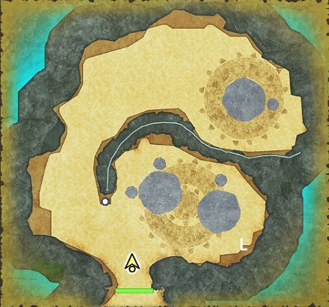 海の濃い青色の部分が、海中を移動できる場所です。海中には段差があり、Lボタンで上昇、ZLボタンで下降しながら移動しました。