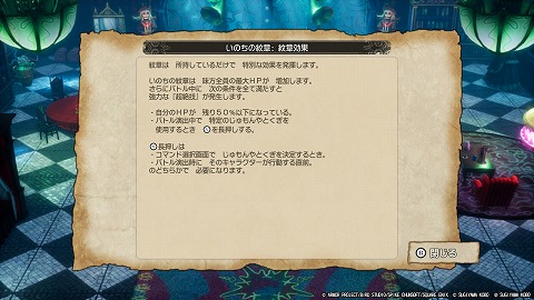 いのちの紋章を入手すると、味方全員の最大HPが増加します。それから超絶技が使えるようになりました。