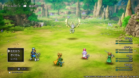 ローレシア王子にバイキルトをかけて、あくま斬りで攻撃しました。サマルトリア王子が回復、ムーンブルク王女はキラキラポーン、サマルトリア王女がメラミで攻撃しました。