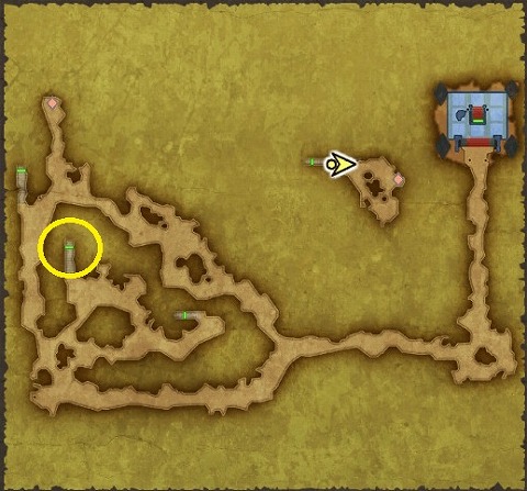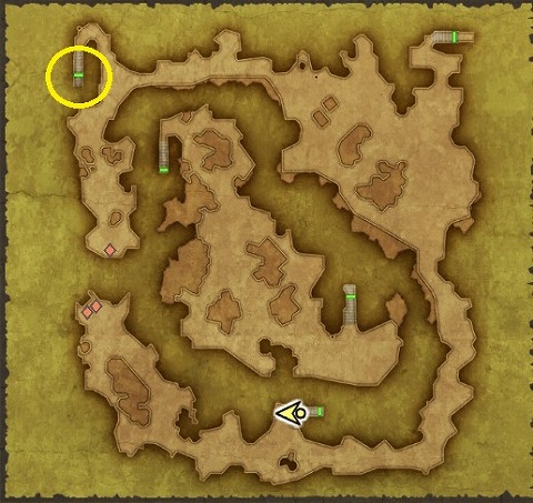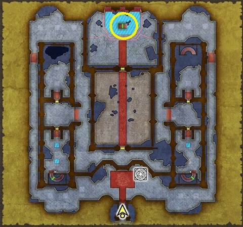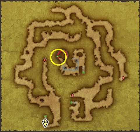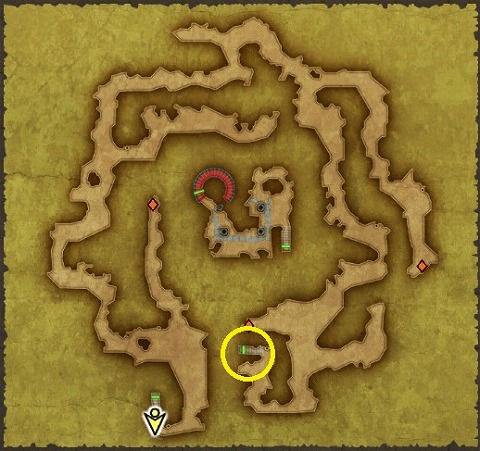 竜王の城・地下2階の中央のエリアにやってきました。中央のエリア西の階段で、地下1階に移動します。