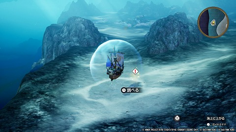 世界の思い出は全部で7つあります。海中にあり、!マークが表示されています。ミニマップもキラキラ光っていて分かりやすくなっています。